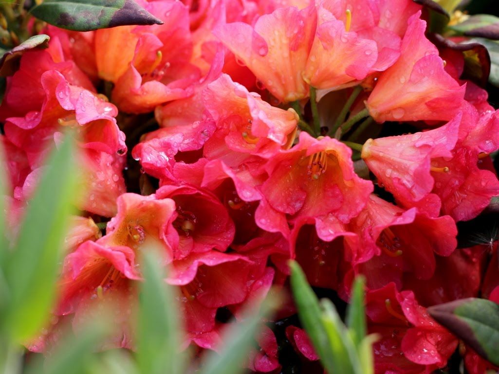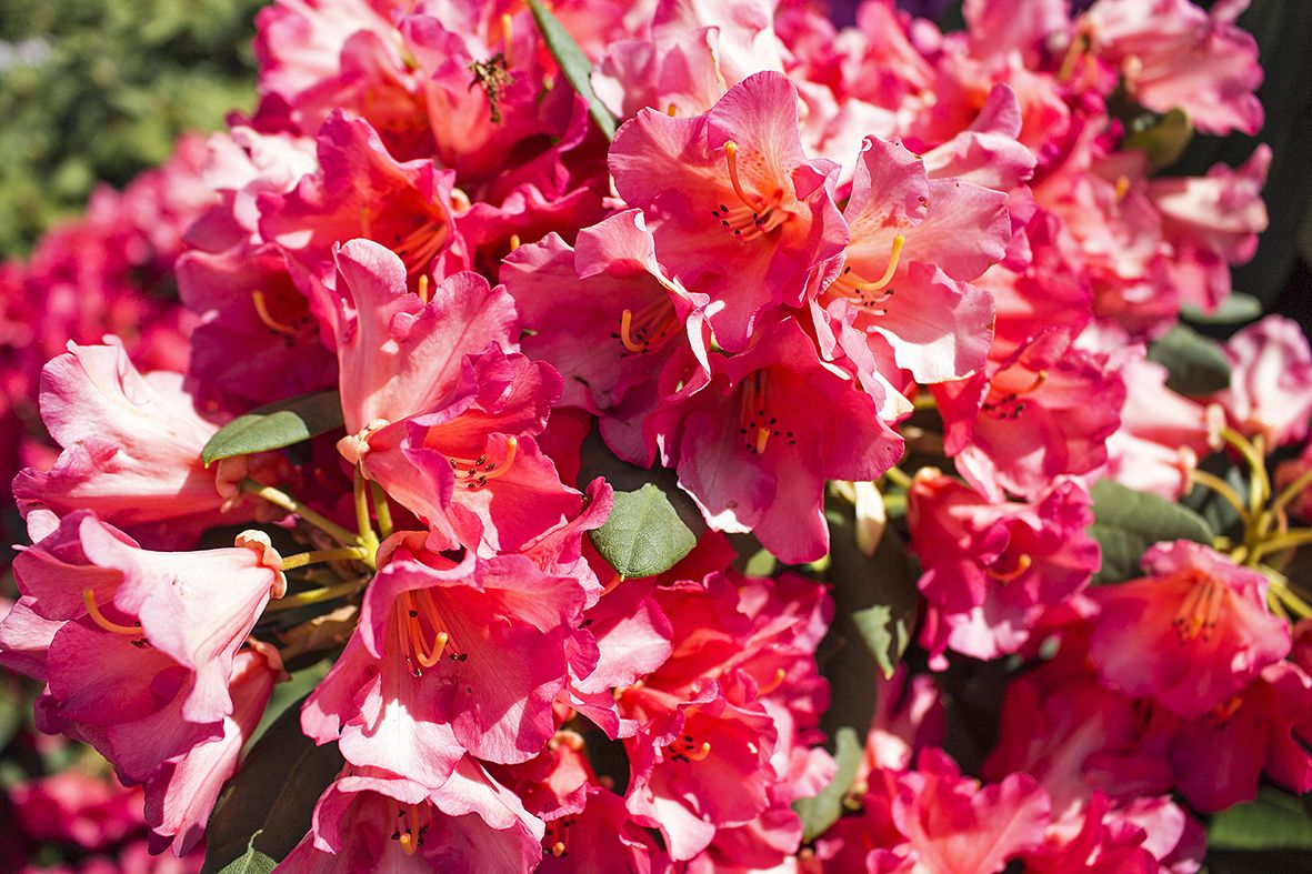 Рододендрон Абендзонне відноситься до чудової групи вічнозелених гібридних сортів рододендрону, що відрізняється рясним цвітінням, високою морозостійкістю, невибагливістю до умов вирощування. Квітки великі, світло-рожевого, червоного забарвлення. Сорт повільно росте, листя невелике, темно-зеленого забарвлення, довгастої форми не опадає. Дорослий кущ з великою силою росту, зростає до 140 см густа крона до 160 см у діаметрі. Бутони світло-зеленого забарвлення, що сильно контрастують з темною зеленню листя.