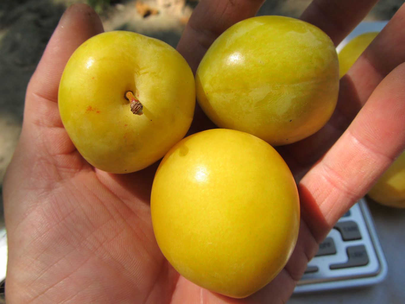 Плоди великі, 35 г, широкоовальної форми. Шкірка міцна, яскраво-жовта, іноді з рум'янцем. М'якуш соковитий, жовтий, доброго кислувато-солодкого смаку (4,2 балу), при улеживании плодів впродовж 10 - 12 днів - солодка. Кісточка від м'якуша відділяється погано.
