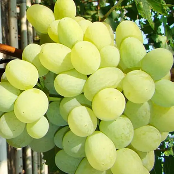 Кетяги конічної форми, значних розмірів, досягають у вазі 600-1200 грам. Ягоди жовті, при повному дозріванні з легкою рожевиною на сонячній стороні, виростають середнім розміром 28х22 мм і важать в середньому 8-10 грам. М'якуш м'ясистий і соковитий, випромінює мускатний аромат. Урожай має чудовий товарний вигляд.