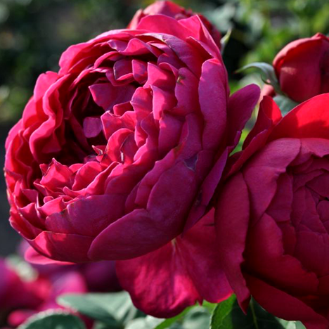 Бутони округло-яйцеподібні, щільні. Квітка неймовірно красива, нагадує старовинну троянду і відноситься до ностальгічних. Він досить наповнений, має кулясту форму, і дуже схожий на півонію, особливо на початку розпуску. Зовнішні пелюстки складені у вигляді чаші, а внутрішні розташовані більш хаотично. Потім, в стадії повного розкриття троянда набуває пишну чашоподібну форму і красується хвилястими пелюстками. Розетка досить велика, діаметром 8 - 11 см, при цьому ще й густомахрова, складається з 40 - 50 пелюсток.