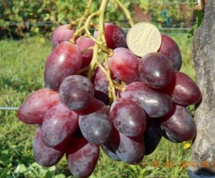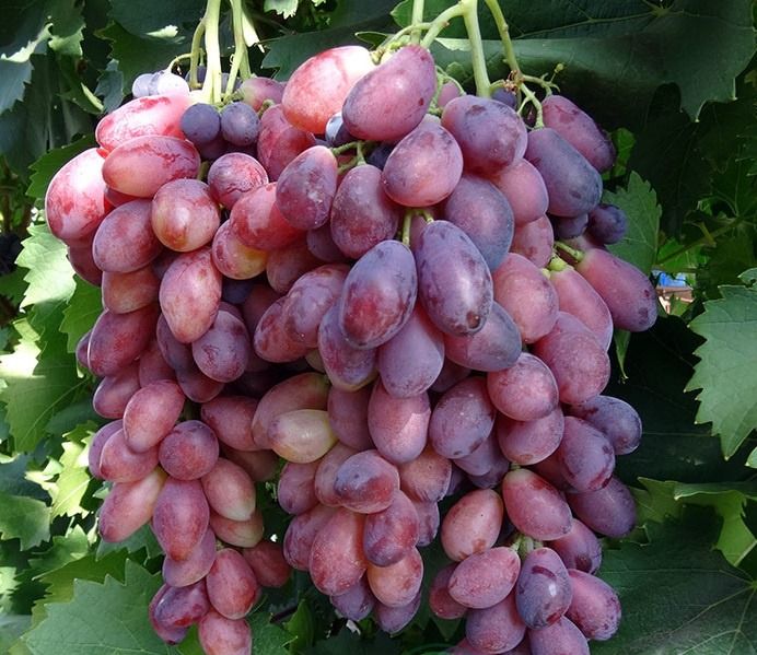 Грони великі, середньою масою 800 - 1000 гр, що досягають 40 см в довжину, середньої щільності, по довжині і структурі нагадують одну з батьківських форм - виноград Деметра. Товарний вигляд дуже привабливий.