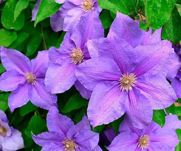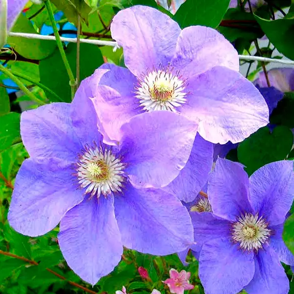 Клематис Бал квітів (Bal Tsvetov) – ранній бузково-блакитний великоквітковий сорт рясного цвітіння з підвищеною морозостійкістю до-30. Висота рослини до 3 м, досить сильна ліана. Його надійна морозостійкість і пишне цвітіння. Належить до 2-3 групи обрізки.