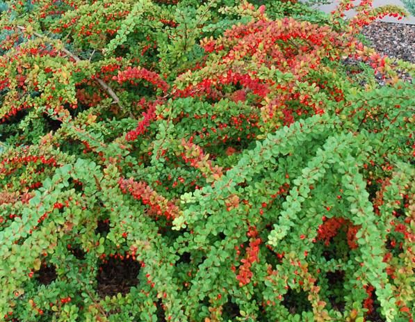 Пагони довгі, зростають горизонтально і з часом гарно опускаються до землі, утворюючи красиву крону. Листя дрібне, весною і влітку залишається яскраво-зеленим, а восени набуває гарного помаранчевого забарвлення. Особливість даного сорту – рясне плодоношення. Плоди овальні, червоні, довго тримаються на пагонах, іноді всю зиму.