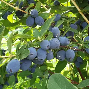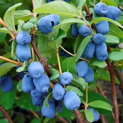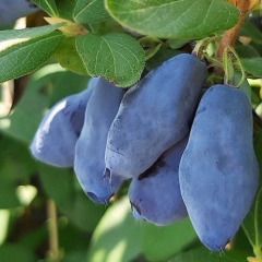 Жимолость Блакитний скарб (Blue Treasure) - середньопізній сорт, період дозрівання плодів: від половини липня до половини липня. Кущ куполоподібний, сильнорослий, добре розгалужується і ущільнюється, висотою до 150 см і шириною до 150 см. Ягоди великі, еліптичної форми, веретеновідние, довжиною до 2,5-3 см, дуже соковиті, ароматні. Середня врожайність із куща: 3,6 кг - 5 кг. Кущі в залежності від умов середньо- або сильнорослі. Розгалужені, висотою 1,3-1,6 м, шириною 1,5 м. Крона майже кругла, куполоподібна, напіврозлога. Можливе механічне прибирання. Висока морозостійкість, до - 35°C.