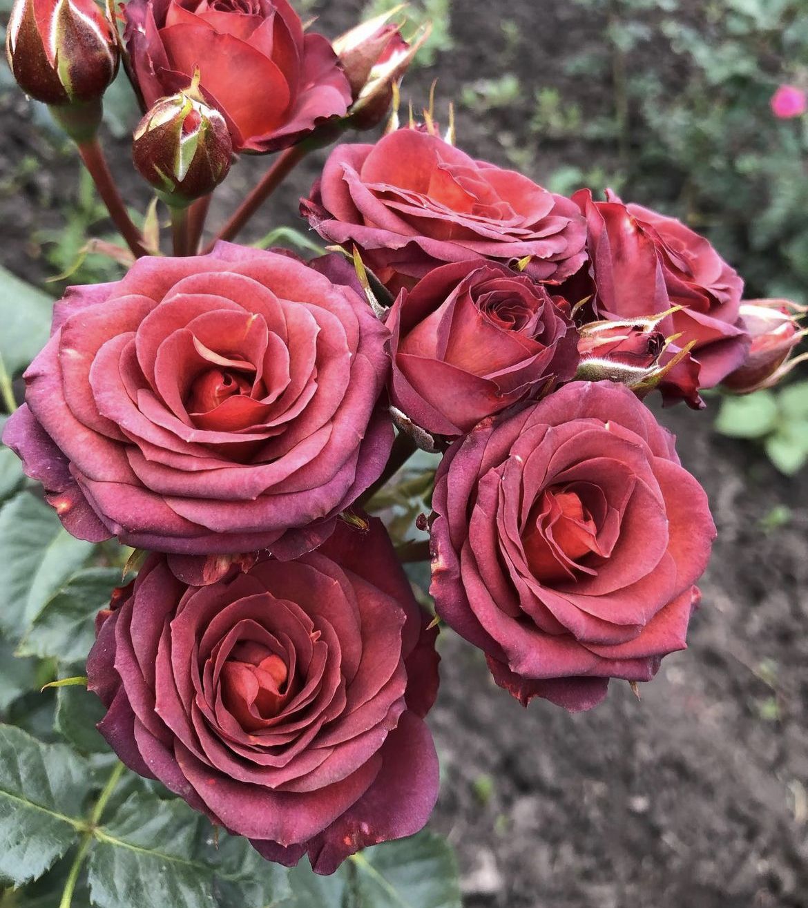 Прекрасна червоно-коричнева троянда спрей Браун Шугар відноситься до групи бордюрних троянд. Виведена у Interplant Голландія.
