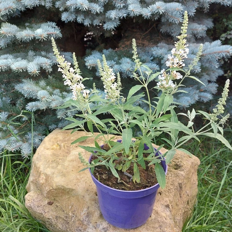 Компактний привабливий сорт будлеї з яскравими квітами. Кущ заввишки до 1,4 м. Листя невеликі, сріблясто-зелені. Квіти білого кольору з помаранчевою серединкою, з виразним медовим ароматом, залучають у сад метеликів, бджіл та інших комах. Цвіте з червня-липня і до кінця літа. Віддає перевагу сонячним місцям, на півдні краще садити в півтіні, і дреновані родючі субстрати. Посухостійка, може рости на сухих піщаних підставах. Використовують в одиночних і групових посадках на газоні