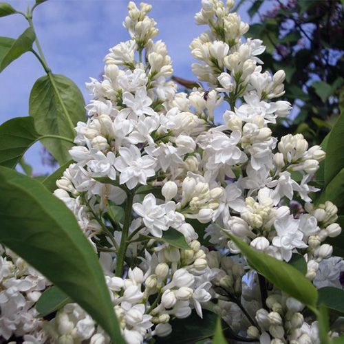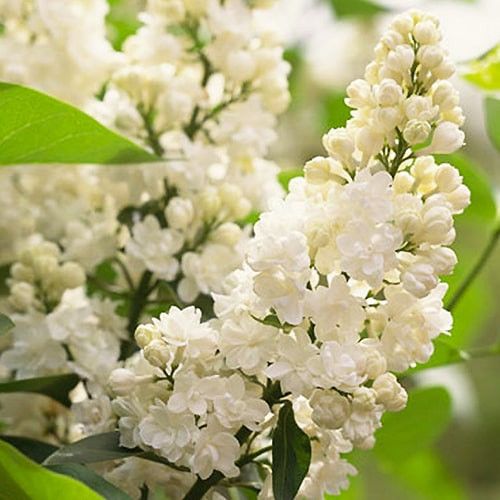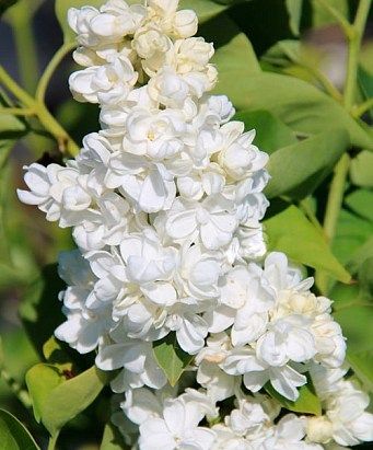 Зеленувато-кремові округлі бутони розкриваються у великі, що складаються з трьох розвинених віночків білі запашні махрові квіти. Суцвіття складаються з 1-2 пар вузькопірамідальних мітелок. Цвіте рясно у середні терміни.