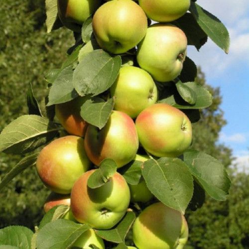 Саджанець Яблуні Білосніжка Колоновидна - Ранньозимовий сорт колоновидних яблунь української селекції, який був виведений в 1987 році після схрещування таких сортів як Білий налив і Сніговий Кальвіль. Сорт має колоновидну форму крони. Основне забарвлення плоду зеленувато-жовте, часто з рожевим рум'янцем. Плід має гладку шкірку. М'якоть зеленуватого кольору, солодкого звичного десертного смаку. Плоди красивого зовнішнього вигляду, добре транспортуються і довго зберігаються. У холодильнику лежать до кінця січня.
