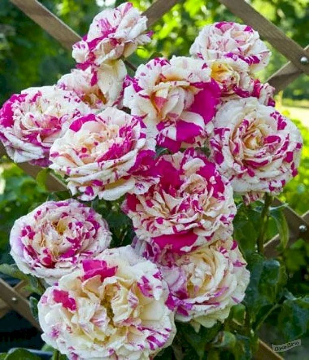 Троянда Ваніль Фрайз належить до групи плетистих троянд, але вдало відрізняється цікавим забарвленням кольорів від багатьох представниць цього класу. Квіти яскраво-червоного кольору, розбавлені світло-жовтими та рожевими штрихами та плямами. Вони мають чашевидну форму. Діаметр однієї строкатої красуні близько 9-10 см. Одна квітка налічує близько 60 пелюсток. Квіти поодинокі або зібрані у суцвіття по кілька штук. Троянда Ваніль Фрайз досягає 300 см. Рослина сильноросла з міцними пагонами. Така сама і ширина куща. Аромат квітів виражений, чимось нагадує фруктовий. Цвіте троянда Ваніль Фрайз дуже пишно та рясно. Цвітіння повторюється.