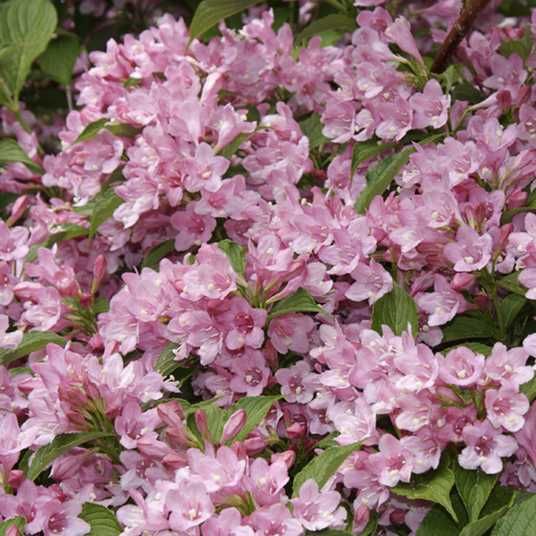 Вейгела Rosea - красивий розлогий гібрид-чагарник висотою до 2 м, шириною до 2,5 м, рясно квітучий з другого року в кінці травня і повторно - в кінці серпня. Кущ зі світло-зеленими, еліпсовидними зубчастими на краях листками, суцвіттями з 3-4 великих до 5 см ароматних квіток-дзвіночків рожевих тонів. Ефектно вейгела виглядає як поодинці на партерному газоні, так і в групових композиціях з листяними і хвойними сусідами.