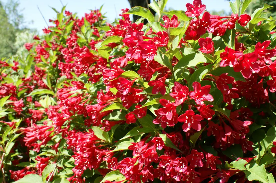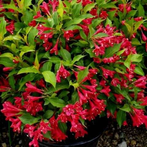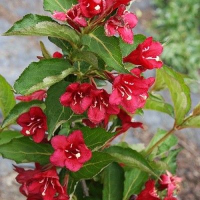 Вейгела червона – це компактний густий чагарник, який виростає до 1,5 м у висоту і ширину, пагони його численні, пряморослі, провислые, вигнуті. Листя цієї рослини еліптичні, по краю пилчасті або городчатие, світло-зеленого кольору. Квіти його мають колокольчиковидную форму, численні, до 6,0 см завдовжки, яскраво-червоного кольору. Період цвітіння Вейгела Red припадає на травень - червень. Любить родючі, добре дреновані, вологі грунти. Слід висаджувати ця рослина тільки на сонячних, теплих місцях, які надійно захищені від вітру, інакше це рослина буде сильно підмерзати. Широко застосовується в одиночних і групових посадках, для створення ландшафтних композицій, живих огорож, а так само для оформлення паркових територій та присадибних ділянок. Ця рослина відмінно підходить як для малих, так і для великих садів.