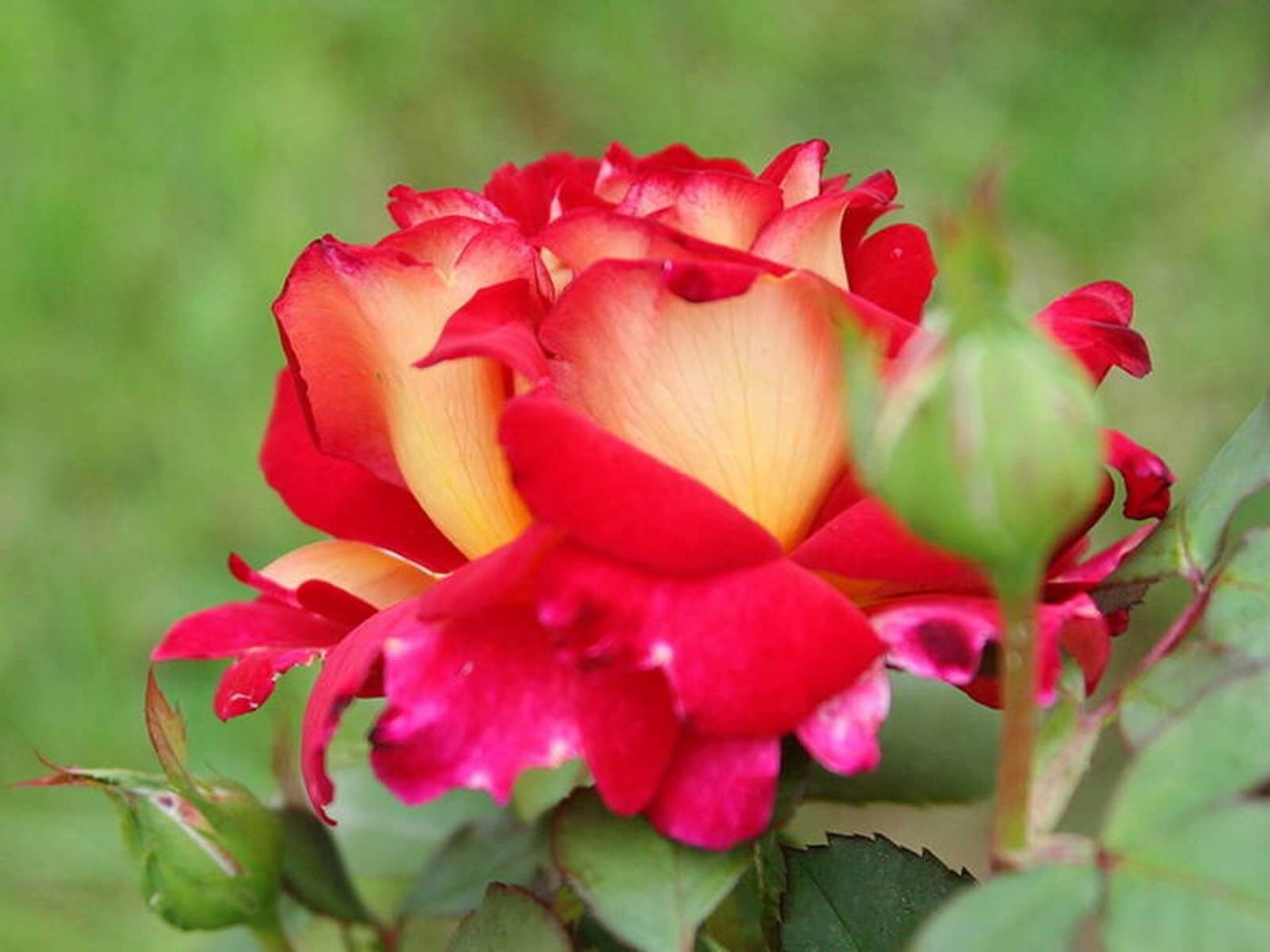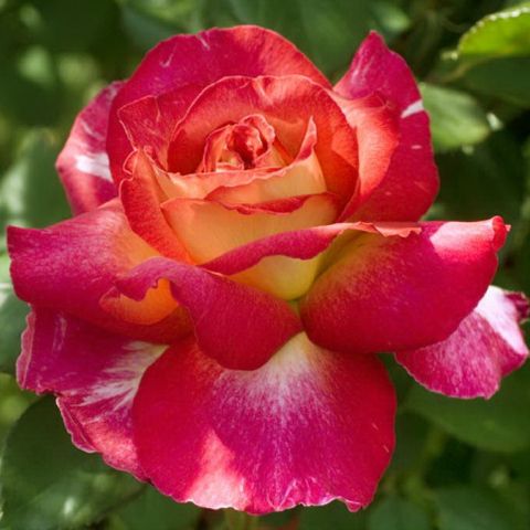 Квітки великі (12-14см), махрові (45лп), двоколірні: верхня сторона пелюсток червона, нижня - чисто жовта. При повному розкритті жовті тони йдуть, і квітка стає яскраво-червоним з одного боку і рожевим з іншого. Мають сильний і приємний аромат. Кущі середньорослі (90-100 см), пагони сильні, квітконоси довгі. Цвітіння рясне, хвилями. Сорт зимостійкий. Чайно-гібридна троянда.
