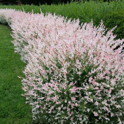 Виростає максимально до 2м. Листя м'яке зелене з кремово-рожевими цятками, стає помаранчовим восени перед листопадом. Після листопаду відкриваються коралово-червоні пагони, які зроблять цікавим і оригінальним сад взимку. Наприкінці зими з’являються ніжні рожеві «котики», які свідчать про те що, весна вже близько. Вирізняється декоративною формою крони, листям, пагонами та перш за все формою весняних приростів, які бувають сріблясті, жовті, рожеві та з'являються безпосередньо перед появою листя.