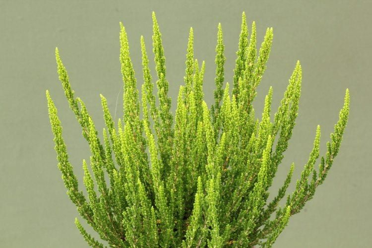 Дуже густий вічнозелений чагарник. Висота дорослої рослини найчастіше становить від 15 до 35 см, рідко - до 50 см, в ширину досягає 25-50 см. Росте повільно. Крона округла. Пагони спрямовані вгору. Листя дуже дрібні, досягають в довжину 0,1-0,3 см, лускоподібний, налягають один на одного у вигляді черепиці, сидячі, темно-зеленого забарвлення влітку і жовто-помаранчевої взимку. Плоди у рослини непоказні, представлені у вигляді дрібних шкірястих коробочок, дозрівають вони в вересні-середині жовтня. Квітів не має взагалі. Зростає на всіх кислих, як багатих, так і відносно бідних піщаних, торф'яних і болотних грунтах. Любить сонце, але мириться з легкою тінню.Витримує морози до -23 ° С, тому на зиму потрібно вкривати торфом (або сухим листям) і ялиновим гіллям. Добре переносить періоди літньої спеки і посухи. Міські умови також переносить добре. Верес необхідно постійно омолоджувати, тобто підтримувати формування нових пагонів, щоб вони не оголювалися. Обрізку важливо проводити в березні-квітні після зимових морозів, в похмуру погоду. Завдяки незвичайному, досить цікавому кольору листя верес Зелія ідеально підходить для створення ефектних композицій у вазах і контейнерах, якими можна перетворити ділянку до невпізнання, прикрасивши ними вхідну зону, терасу, балкон.