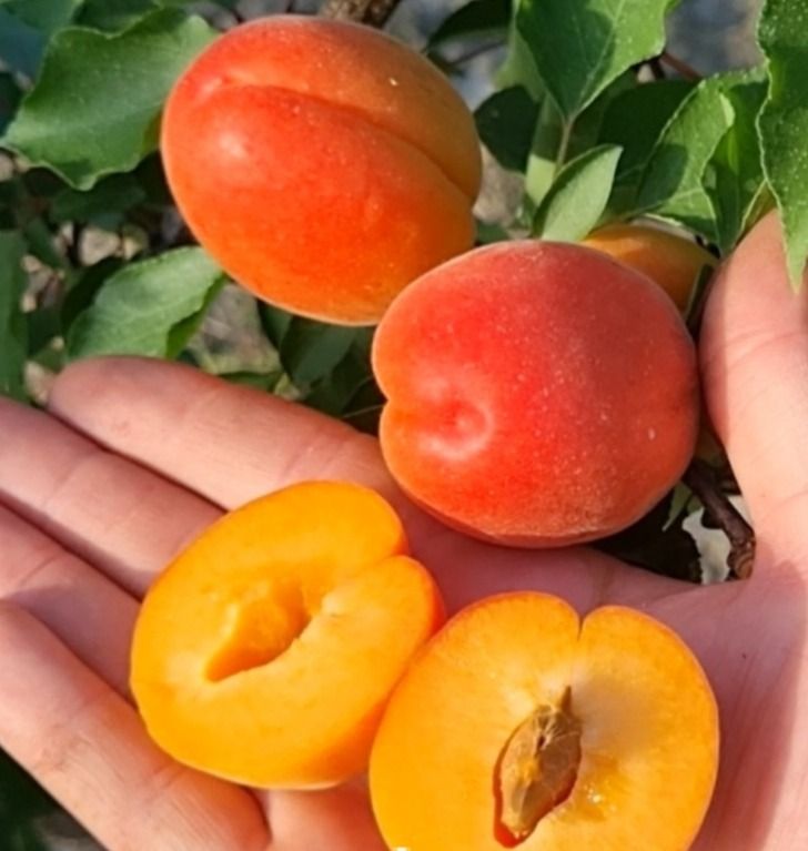 Плоди великі, середньою масою 55 - 70 г подовженої форми, помаранчевого забарвлення з великим однорідним червоним рум'янцем. Відзначено високі ринкові якості завдяки привабливому вигляду. М'якуш щільний, помаранчевий, середньоволокнистий, соковитий, високих смакових характеристик.