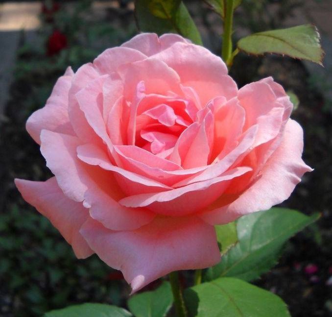 Квітки класичної форми чайно-гібридних троянд, махрові (близько 40 пелюсток), діаметром 9 - 11 см, рожевого кольору з лососевим відтінком. Центр квітки високий, пелюстки злегка хвилясті, витончено відігнуті. Аромат ледь вловимий. Троянда дуже елегантна. Кожна квітка розпускається по одному на дуже міцному і довгому стеблі.