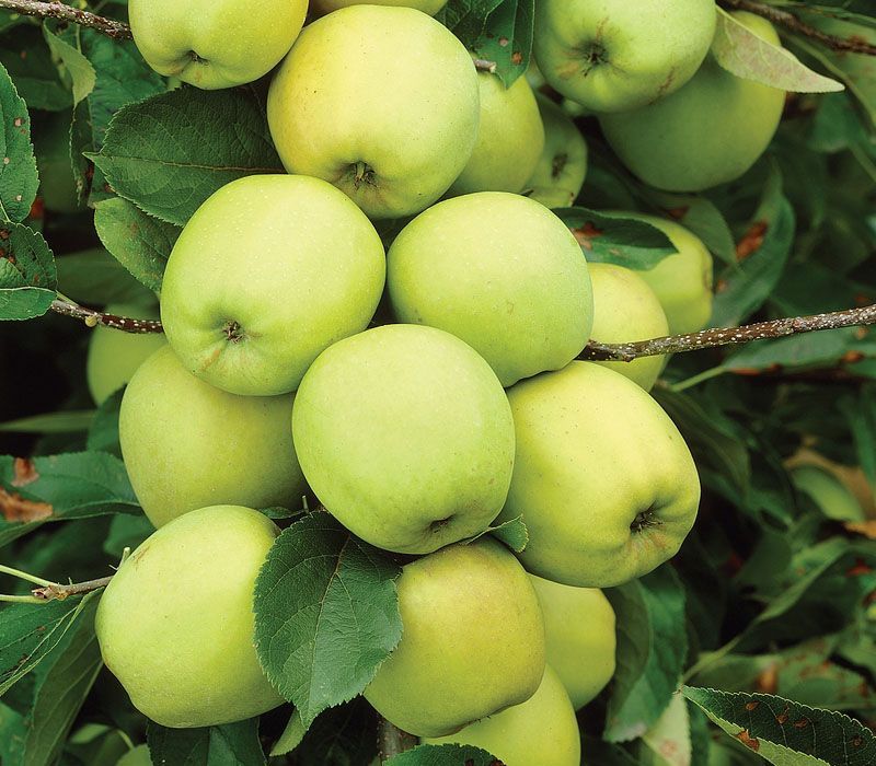 Яблуня Голден Делішес - світовий бестселлер серед зимових сортів яблук. У зарубіжних яблуневих господарствах був більше 25 років основним сортом, який обровлявся для експорту і внутрішнього споживання. Плоди середньо-великі, масою 140-170 грам, витонченої, округло-конічної форми, золотисто-зеленого кольору, іноді з червонуватим рум'янцем, шкірка оржавіла. М'якоть зеленувата, після лежання світло-жовта, соковита і щільна, пряного, солодкого, десертного смаку. Дерево середньоросле, формує з конусоподібної з роками широкоокруглу крону. З віком крона набуває майже плакучу форму під вагою щорічних врожаїв. Рослина морозостійка, але погано переносить посушливі періоди. Плоди знімають в кінці вересня, можуть зберігаються до квітня, не втрачають притаманну сорту соковитість.