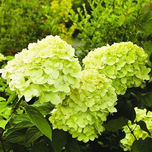 Квіти зібрані в конусоподібні суцвіття на верхівках пагонів. Суцвіття виростають до 25 см завдовжки, спочатку вони мають біло-зелене (салатове) забарвлення, потім стають трохи рожевими. Вирізняється ж поміж інших сортів гортензії волотистої яскравим лаймовим кольором. Цвітіння починається в липні і триває до середини вересня.