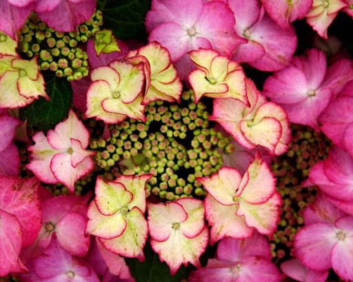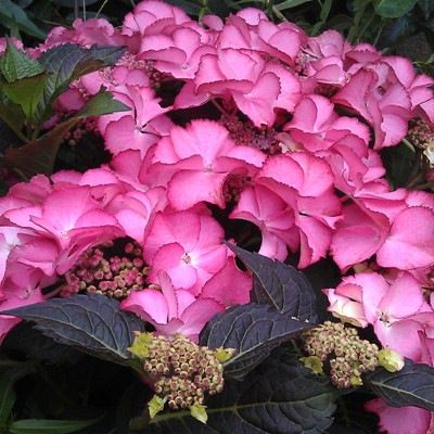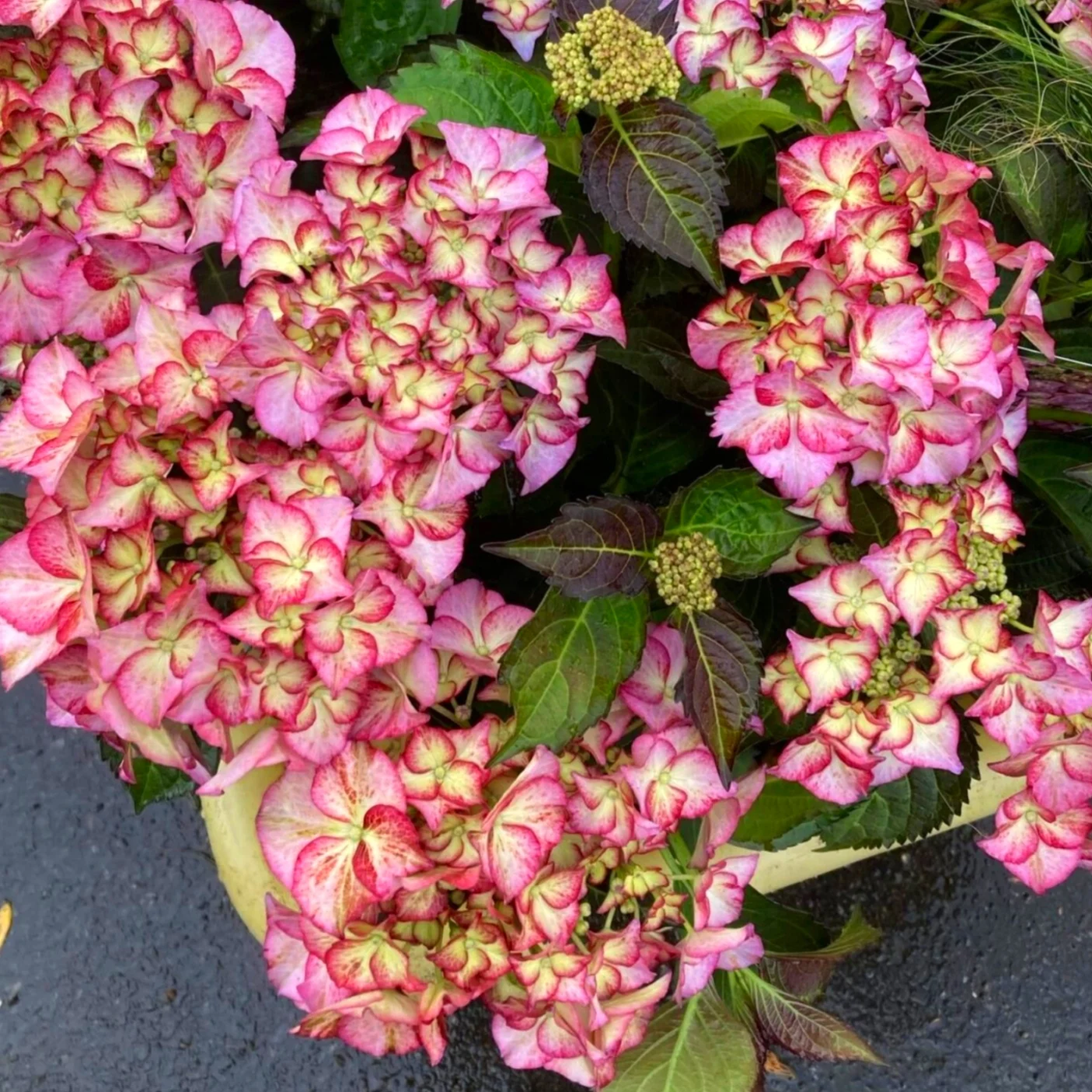 Гортензія ‘Tiffany Purple’ утворює пишні розгалужені куртини з компактним правильним габітусом, що досягають близько 100 см у висоту. Підняті, міцні, жорсткі пагони прикрашені широко яйцевидним загостреним листям із зубчастими краями, які на початковому етапі розвитку мають дуже темне, пурпурно-коричневе забарвлення, а згодом зеленіють. Чагарник рясно цвіте з червня до вересня. Верхівки стебел прикрашають милі плоскі парасольки, які зачаровують своєю цікавою формою та гарним забарвленням. Дрібні фертильні квітки, зосереджені у центрі суцвіття, огорнуті вінком із великих стерильних квіток з чотирьох широких пелюсток