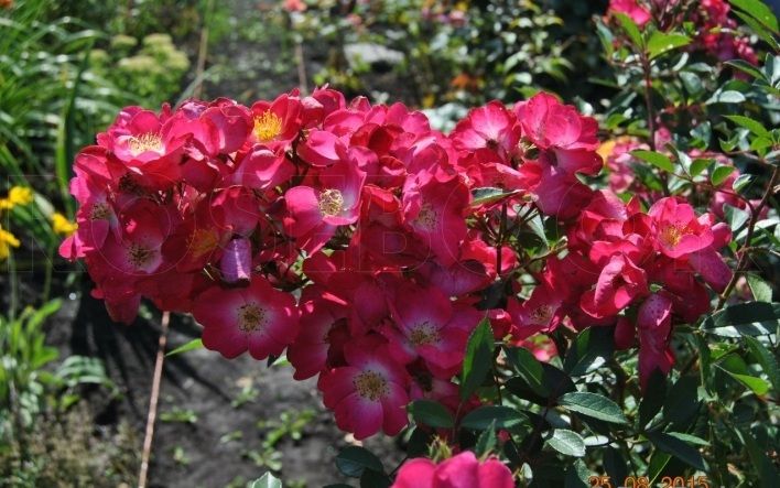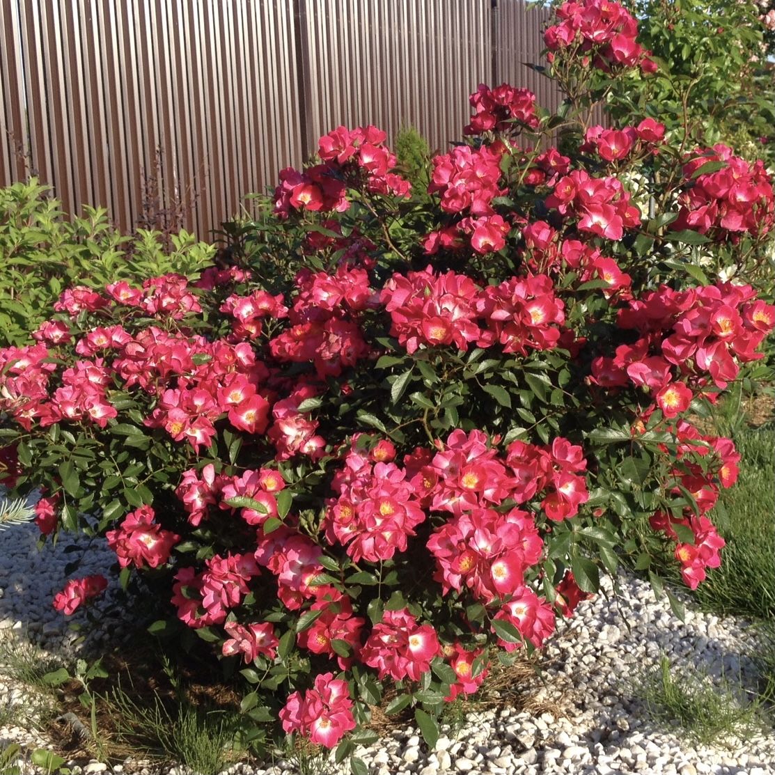 Фантастично рясне цвітіння, в великих гроноподібних суцвіттях налічується до 40 бутонів, які, розпускаючись, утворюють суцільний покрив з квіток, що зберігається тижнями. Від цієї троянди завжди залишається враження масовості, тривалості і безперервності цвітіння. Квітки вишнево-червоні зі світлим, майже білим центром і витонченими золотистими тичинками. Розмір квітки 4-5 см. Кущі вертикальні, висотою 100-120см. Це невибагливий сорт, морозостійкий, стійкий до захворювань. Світові нагороди: срібна медаль Monza Rose Trials, Італія, 2009 року; срібна медаль Courtrai / Kortrijk Rose Trials, Бельгія, 2013.