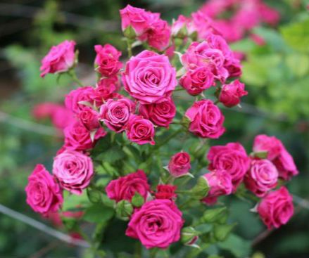 Класична спрей-троянда насиченoго рожевого кольору. Махрові квітки діаметром 4-6 см, чайно-гібридної форми, зібрані в великі щитковидні суцвіття. Прямостоячі кущі заввишки 60-80 см, добре покриті середньо-зеленим листям. Спрей-троянда Грація зимостійка, стійка до хвороб і погодних умов. Благородно виглядає на низькорослих штамбових трояндах.