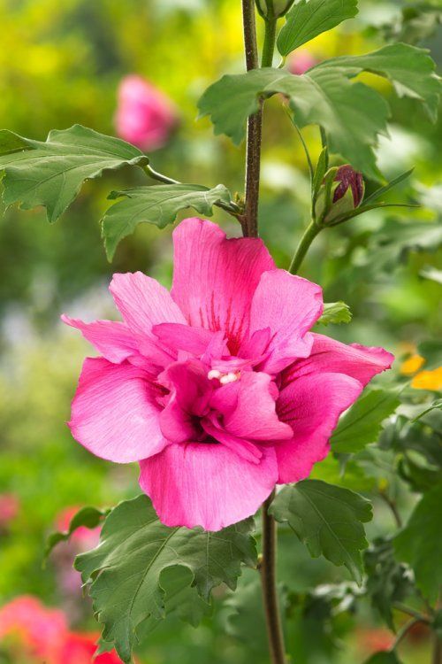 Гібіскус сирійський Флауер Тауер Рубі в перекладі назва (Квіткова вежа Рубі) листопадний чагарник з вузькою, колоноподібною формою крони і тому підходить для невеликого декоративного саду, доповнить композицію з багаторічними хвойними рослинами. Цвітіння починається у липні, темно-рожево-червоні, наполовину заповнені квіти з червоною серцевиною, що нагадують гарні образи гібіскусу з далеких тропічних країн! Flower Tower Ruby стане окрасою будь-якого саду, підходить для вирощування на балконі або терасі або сідає як живоплот.