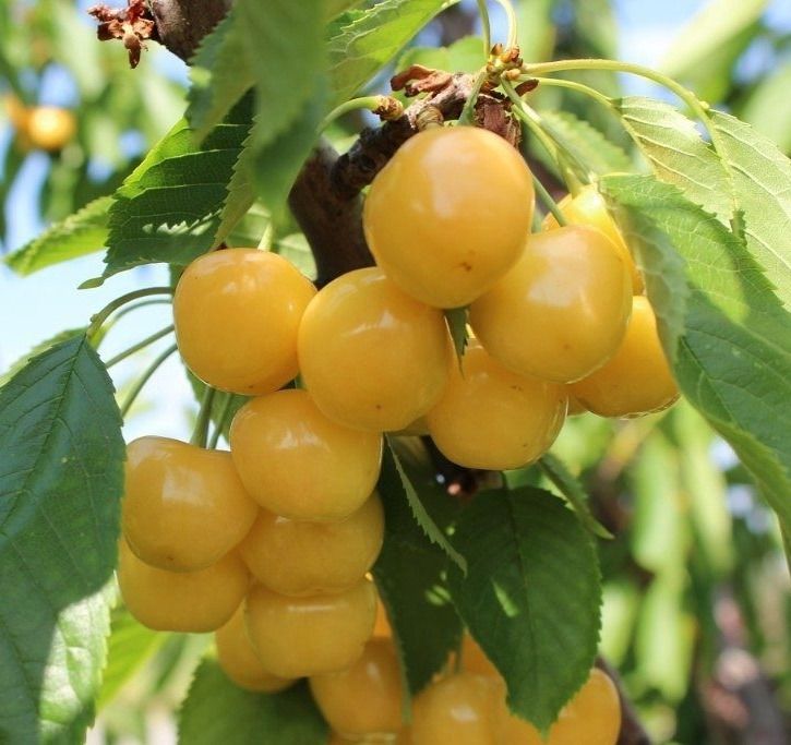Плоди середніх розмірів, масою 6-8 г, округло-серцеподібної форми, жовтого кольору. М'якоть світло-жовта, щільна і соковита. Кісточка невелика, видовжено-яйцеподібної форми, погано відділяється від м'якоті. Дерево сильноросле, утворює густу широкоокруглую крону з рівних, сильно облистяних пагонів. Рослина дає перший урожай на 3-4 рік, вимагає сусідства інших пізньоквітучих черешень для запилення, так як є самобезплідним сортом. Дерево посухо - і морозостійке, стійке до грибних хвороб за виключенням дощових років, коли плоди розтріскуються і уражуються сірою плодовою гниллю і вишневою мухою. Плоди показують високу якість переробленої продукції, також дуже смачні у свіжому вигляді.