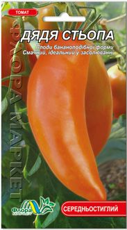 Новий, високорослий (до 2 метрів) сорт томатів середнього терміну дозрівання з плодами бананоподібної форми для теплиць і плівкових укриттів. Вимагає пасинкування в 1-2 стебла і підв'язки. Китиця проста з 3-5 плодами. Плоди циліндричної форми з носиком, злегка зігнуті, товстенькі і трохи приплюснуті, як банани. Томати ідеальні в засолюванні, оскільки майже не містять соку, щільні, крохмалисті і тверді. Смакові якості прекрасні. Так само відмінно зарекомендували себе в зберіганні та швидкому заморожуванні на зиму. Вага плодів від 100 до 200 г, найбільші - до 300 г. На 1 м2 рекомендується висаджувати не більше 3 рослин.