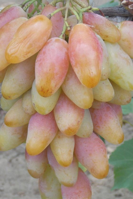 Діксон - нова гібридна форма винограду приватної селекції Бурдака А.В., дозріває до середини вересня. Квітки двостатеві. Грони конічні, помірної щільності, дуже ошатні, середньою масою 600-800гр, на потужних формуваннях набагато більші. Ягоди подовжені з потовщенням посередині, іноді веретеновідні, жовто-рожеві, дуже великі, масою до 14-16гр, окремі більш 20гр, до 6 см в довжину. Шкірочка тонка, при їжі не відчувається, м'якоть щільна, хрустка. Смак гармонійний. Забарвлення ягід в жаркому кліматі може залишатися жовтою аж до дозрівання, в регіонах де мають місце значні перепади температур фарбування набагато більш яскраве.