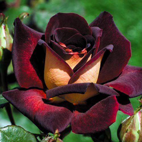 За казками ми дуже багато чули про квіткових фей, які перетворюють ліси і сади. Так ось і нам пощастило зіткнутися з чудовим витвором чарівництва. Ця чайно-гібридна троянда Eddy Mitchell (Едді Мітчел) затьмарить своєю красою суперниць у вашому саду. Розпускається бутон троянди діаметром 8-10 см, набуваючи чудовий темний бархатисто-червоний колір з молочно-жовтою зворотною стороною пелюсток, пізніше троянда набуває майже чорний відтінок. Цвітіння тривале, протягом усього сезону бутони розпускаються один за іншим. Висота троянди сягає 70-80 см з глянцевим темно-зеленим листям. Зрізані квіти дуже довго не в'януть і радують своїм виглядом оточуючих. Сорт Едді Мітчел має відмінну стійкість до хвороб і роси, висока зимостійкість.