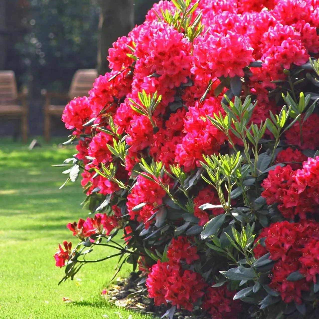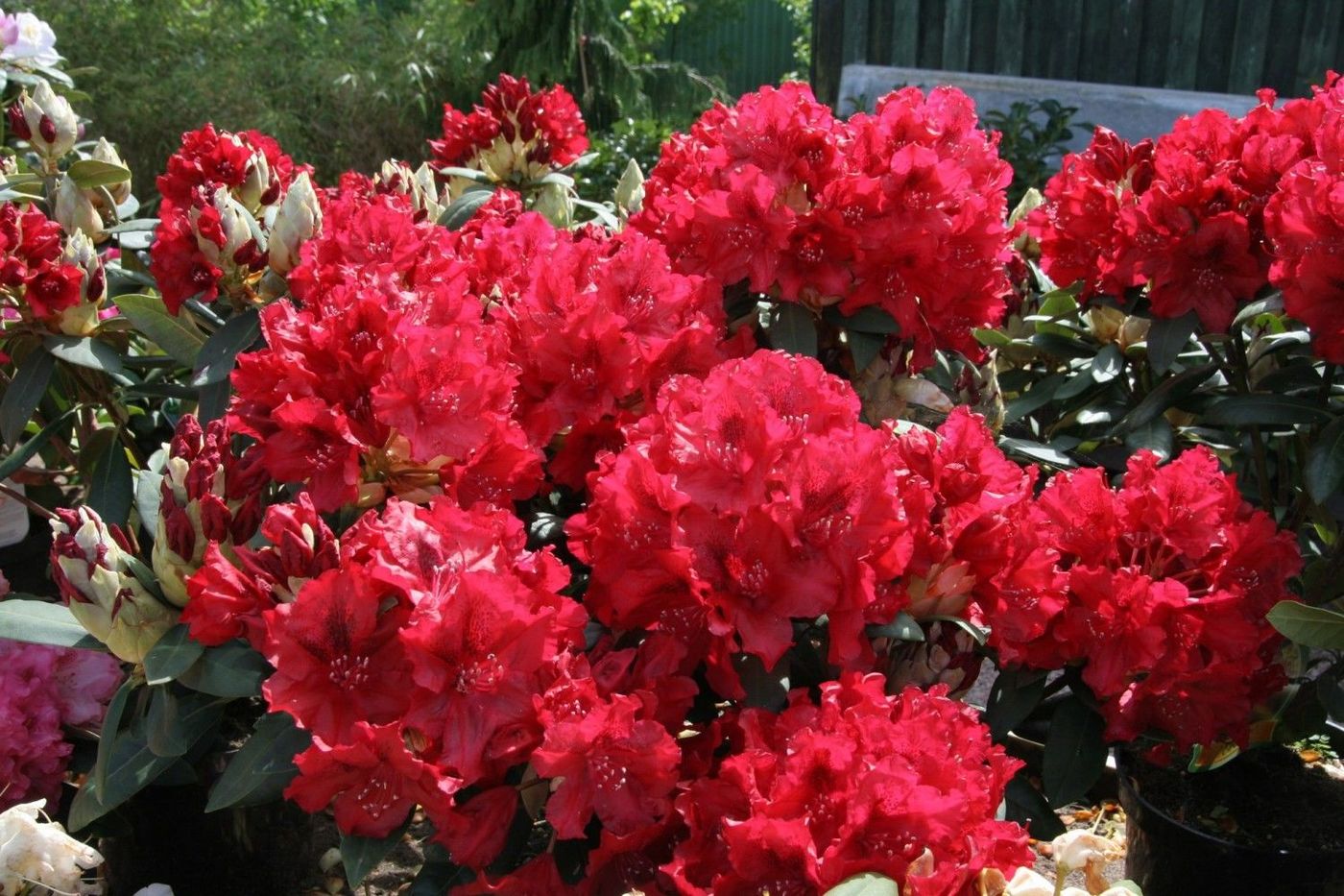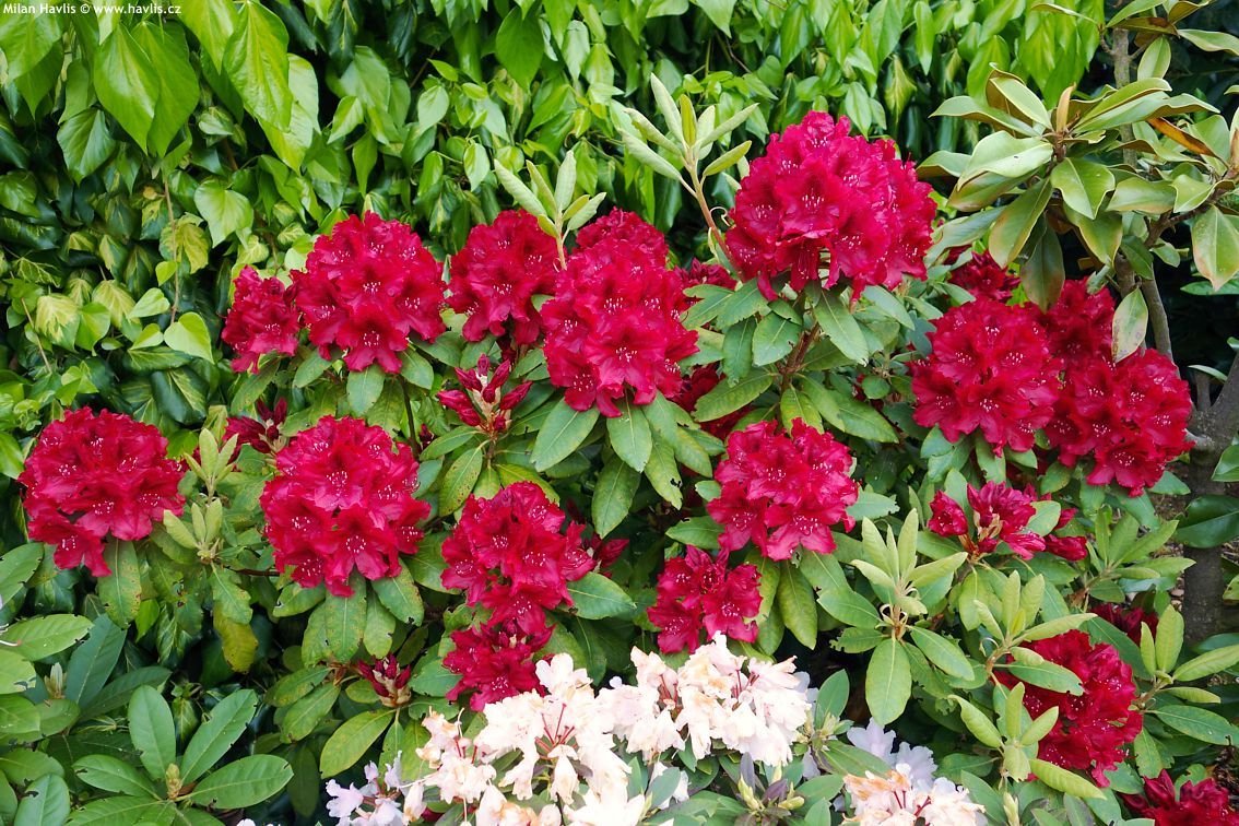 Вічнозелений чагарник із досить широкою пухкою кроною. Пагони спрямовані нагору. Росте швидко, розлого. У 10 років кущ досягає 1,5 м у діаметрі та 0,8 м у висоту. Квіти темно-червоні, що не змінюють відтінку протягом усього періоду цвітіння. Краї пелюсток ніжні, хвилясті та рифлені. Цвіте у травні – на початку червня. Листя вузькоеліптичні або еліптичні, великі, насичено зелені або темно-зелені, шкірясті, матові.