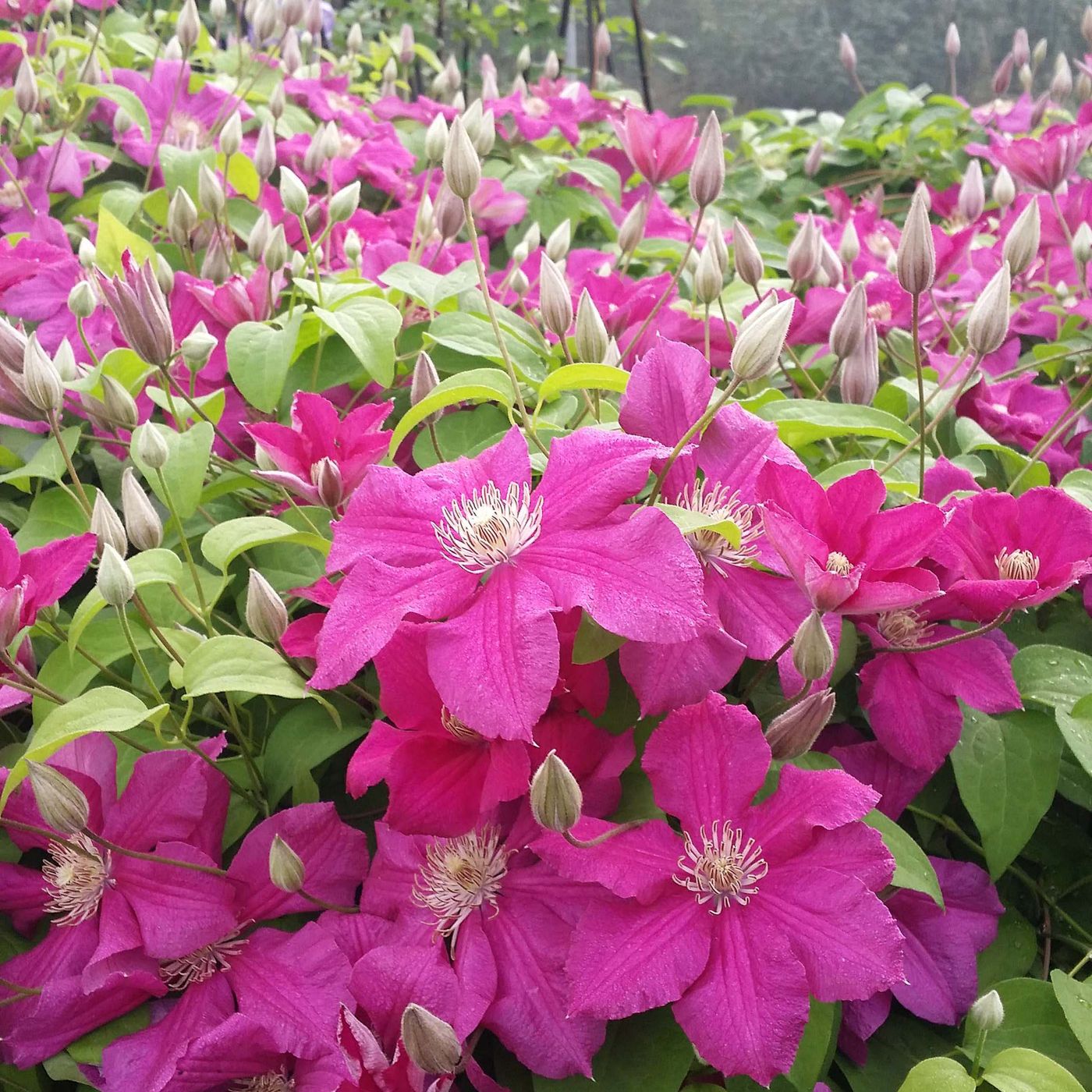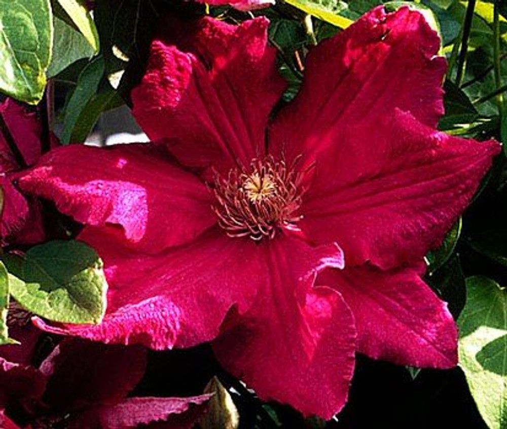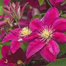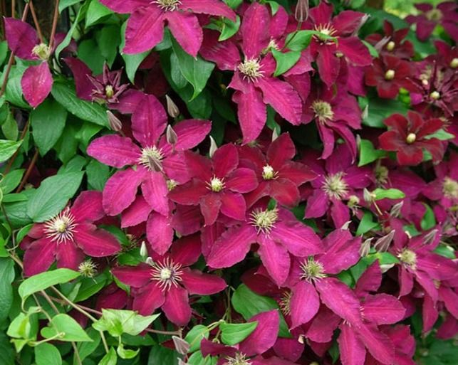 Клематис Ernest Markham (Ернест Маркхам) - сорт привертає увагу дивовижною квіткою яскраво-насиченим забарвленням. Ліана з помірною силою росту, що досягає до 3-4 метрів у висоту. Квітки яскраво-червоні з бордовим відтінком.
