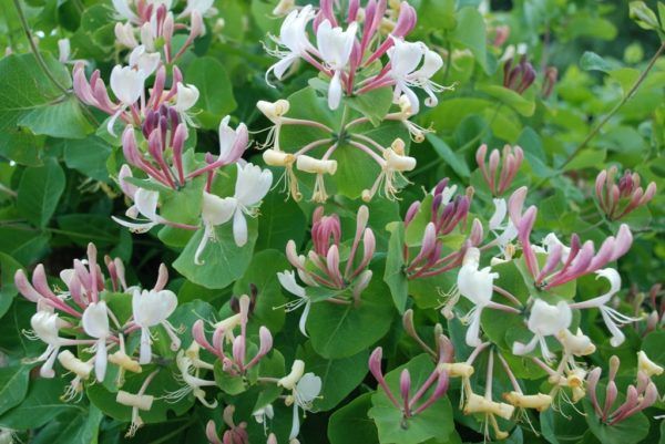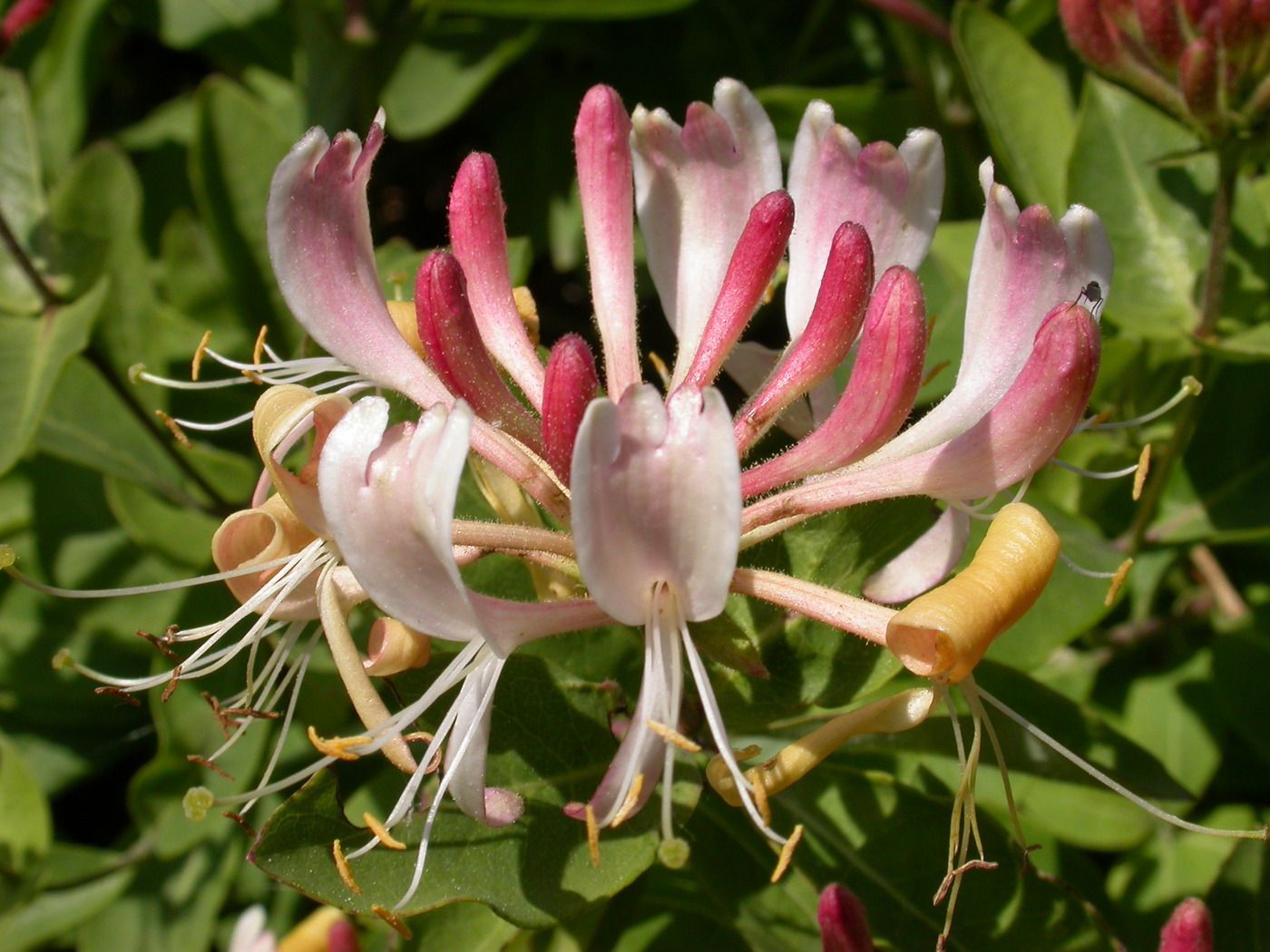 Квіти ароматні (приємний ванільний запах), розташовані в пазухах зрощеного листя по 15-30 штук, деякі квіти являють собою трубочки до 4 см у довжину, симетричні, двогубі, з червоно-блакитним або пурпурним зовні віночком і світло-жовтим усередині, які при Відцвітання стають жовтими.