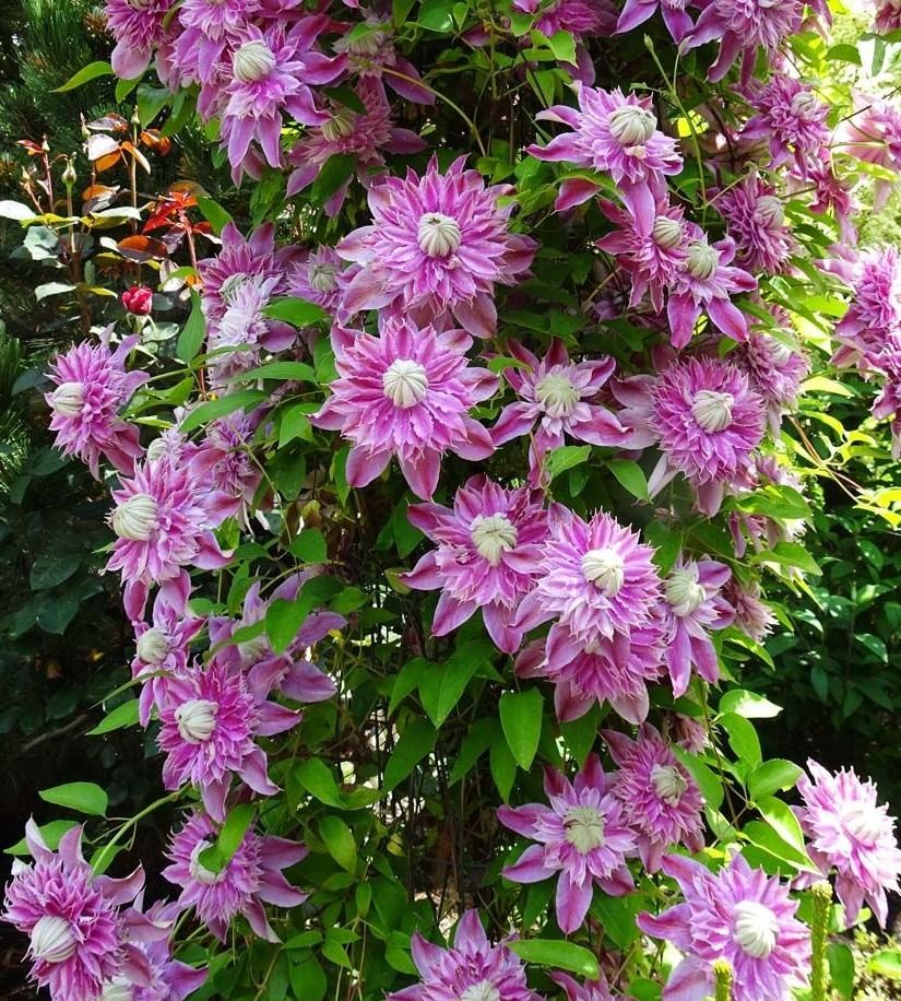 Завжди цвіте махровими квітками на старих пагонах і на молодих. Квітки з вишуканим ніжним ароматом, що не так часто зустрічається у клематисів. Тому його можна обрізати і за типом 2 і за типом 3. Тобто або злегка вкорочувати або сильно обрізати, залишаючи лише 30 см - 40 см. При обох типах обрізки квітки залишаться махровими та пишними. Компактна кущова ліана – до 2,5 м, можна вирощувати у контейнерах.