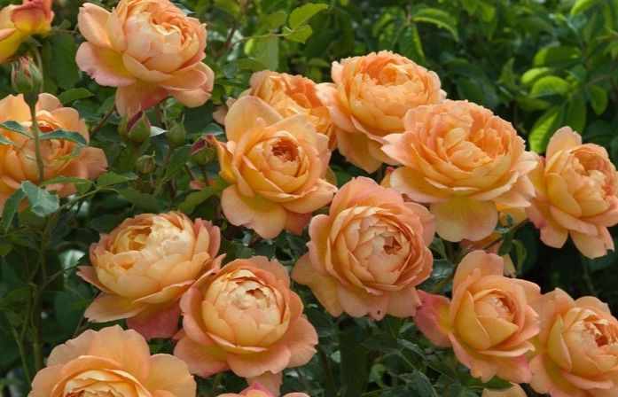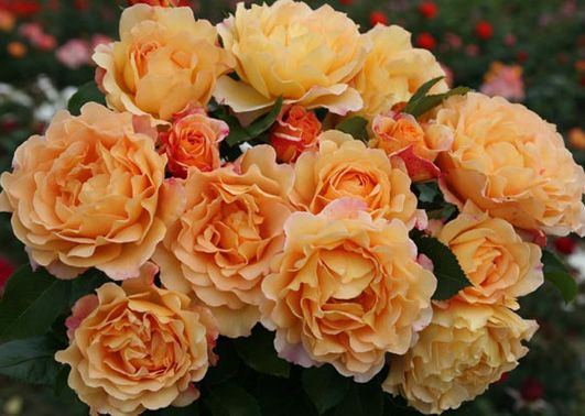 Троянда Зоненвелт - неймовірно рясно квітучий компактний сорт. Невеликі махрові квітки з 17-25 пелюсток пофарбовані в теплі абрикосові тони. Без аромату. У повному розпуск по краях пелюсток посилюється рожевий відтінок, поступово переходить в яскравий рум'янець. Квітки розпускаються в невеликих кистях. Цвіте протягом усього сезону. Кущ розлогий, з дрібним глянсовим листям, висота 130 -140 см , діаметр квітки 8 -10 см. Цвітіння хвилями весь сезон. Добре переносить зиму і має високу стійкість до захворювань.