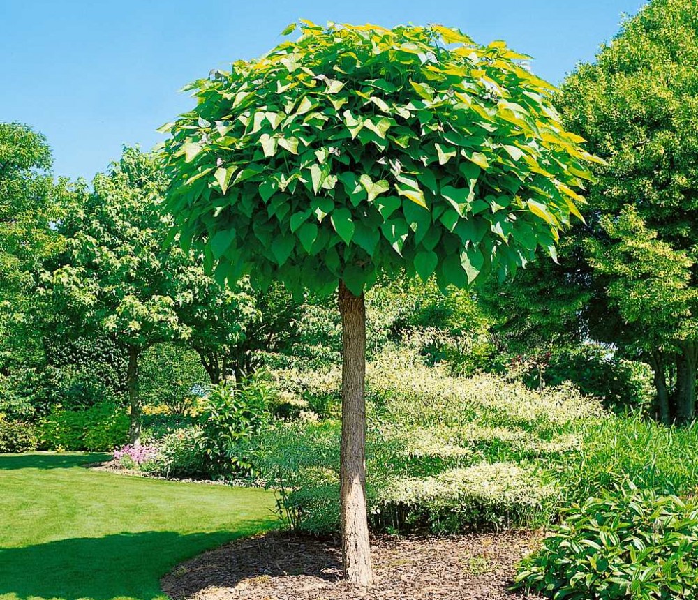 Листопадне невелике дерево на штамбі, з округлою, дуже щільною, плоскою кроною, яка з віком розростається в ширину і вдвічі перевищує свою висоту. Розмір дерева залежить від висоти щеплення, до 4-7 м заввишки, в діаметрі до 5 м.