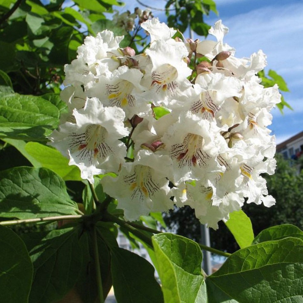Листя супротивне, серцеподібної форми, 10-15 см завдовжки, зелене, восени стає світло-жовтим.