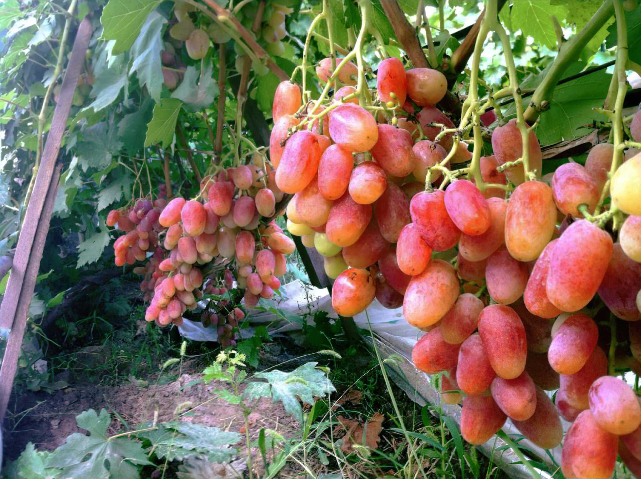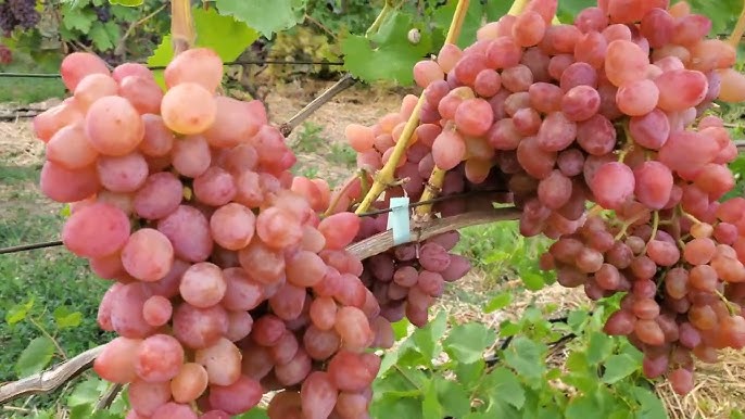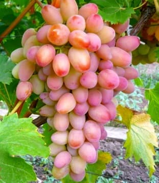 КАТРУСЯ КАХОВСЬКА - столова форма винограду раннього строку дозрівання. Квітка двостатева. Гроно середньо-рихле, вагою 500-1000 г. Ягоди дуже великі, подовжено-овальні, часто з загостреним кінчиком. Середня вага ягоди становить 15 г, можливі ягоди вагою 20 г і більше. Колір малиново-рожевий, іноді з жовтим кінчиком, що надає ягоді особливу привабливість. Плодоношення пагонів високе, до двох суцвіть на пагін. Смак гармонійний, з присмаком тропічних фруктів. Цукронакопичення високе. М'якоть щільна, хрустка. Шкірка при їжі не відчувається. Урожай здатний довгий час зберігатися на кущах. Транспортабельність дуже висока. Форма придатна для довготривалого зберігання. Дозрівання лози раннє та добре. Сила росту потужна. Стійкість до основних хвороб становить 2,5-3 бали.