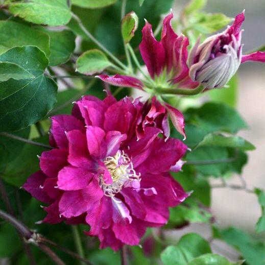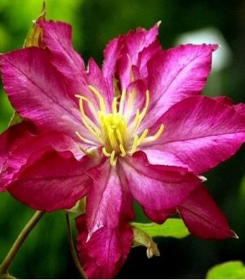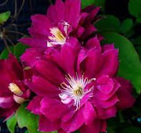 Клематіс Акафудзі – сорт японської селекції. Квітки діаметром 8-12 см, переважно напівмахрові, пишні. Пелюстки від червоних до червоно-пурпурових, дуже красиво поєднуються з довгими жовтими пильовиками. Забарвлення пелюсток не тьмяніє на сонці. Цвітіння у травні-червні на торішніх пагонах та у серпні на пагонах поточного року. Висота 150 см. Добре підходить для вирощування у контейнерах на балконах та терасах. Зона 5 (до -23 º С). Особливість цього кольору полягає в тому, що він досить стійкий до сонця і не вицвітає на світлі.