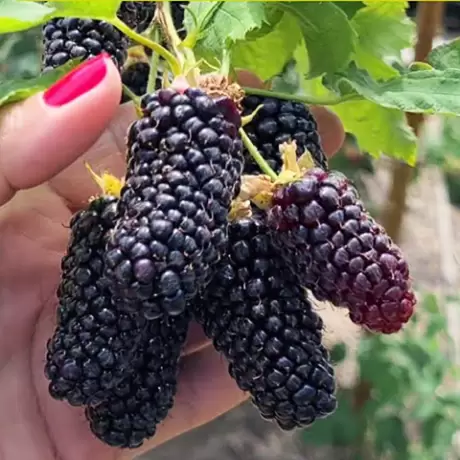 Ожина Коламбія Гігант - ремонтатний, безколючковий сорт, виведений в США. Пагони виростають від 1,5 до 2,5 м, вони досить гнучкі, тому при вирощуванні потрібна опора (шпалера). Оскільки сорт ремонтантний цвітіння триває з червня по вересень. Дозрівання ягід починається з липня місяця. Ягоди вважаються унікальними, адже їх довжина сягає 6 см, а важити може до 20 г. Форма плоду витягнута, злегка округла, смак кисло-солодкий з властивим ожині ароматом. Колір у зрілих ягід - насичено-чорний. Сорт самозапильний, при посадці краще вибирати сонячну сторону, влітку потрібен рясний полив. Морозостійкість середня до -13 ° C, тому на зиму потрібне укриття. Сорт стійкий до хвороб.