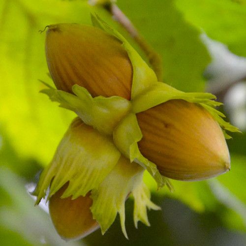 Цвіте у люому-березні.Його листки темно-зеленого кольору (восени – червоні), широкі, овальні, великі. Плодова обгортка довша за горіх, але плоди легко випадають після дозрівання.