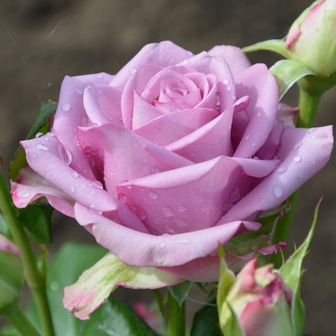 Кущі з міцними квітконосами висотою до 80-100 см, шириною до 40-50 см. Бутони до 6-8 см, багатопелюсткові, рідкісного лілово-лавандового відтінку. Листя - велике, при затяжних опадах і прохолодній погоді потрібна профілактика хвороб. Аромат – середньої насиченості, приємний.