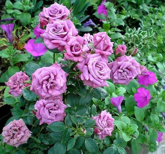 ЛАВЕНДЕР МЕЙЛАНДІНА / Lavender Meillandina - Meilland, Франція, 1999 р. Група - мініатюрна троянда , повторноквітуча, цвітіння рясне. Висота куща 40 - 50 см, ширина 40 см. Квітки - махрові, до 30 пелюсток, класичної форми, рожево-лілового кольору з бузковим відтінком.