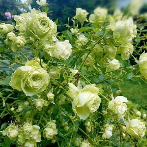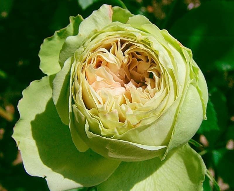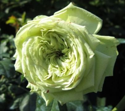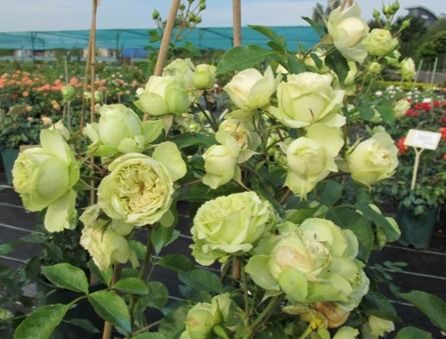 Троянда флорибунда Лавлі Грін - виведена відомою селекційною фірмою Мейя 2005 року народження. Незвичайність сорту полягає в унікальному забарвленні квітів. У них поєднується білий колір з вираженим салатовим відтінком і пробивається по краю пелюсток червоним рум'янцем. За формою квітки діаметра до 8 сантиметрів нагадують кулю, щільно набитий пелюстками. Повністю квіти не розпускаються та залишаються весь період в стані бутона. На пагонах квітки з'являються по 5-8 штук практично безперервно протягом усього літа. Аромату у троянди практично немає.