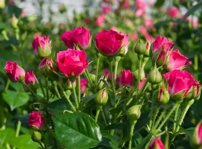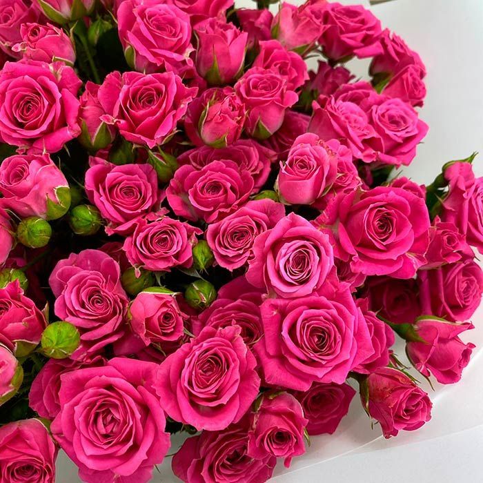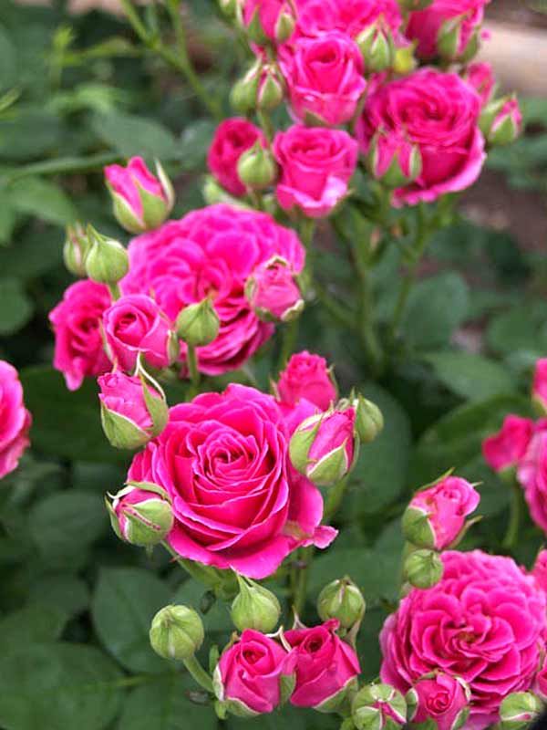 Троянда спрей Малина Ніна - із групи сортів спрей з дрібними квітами діаметром 5-7 см, махрової структури, помповидної форми. Гілочка є букетом з рожево-малинових бутонів. Кущ густий, висотою близько 50 см і шириною 30-40 см, ідеально підійде для вирощування в горщиках для домашнього декору або висадки як бордюр. Живий бордюр із троянд сорту спрей завжди виглядатиме вишукано та естетично.