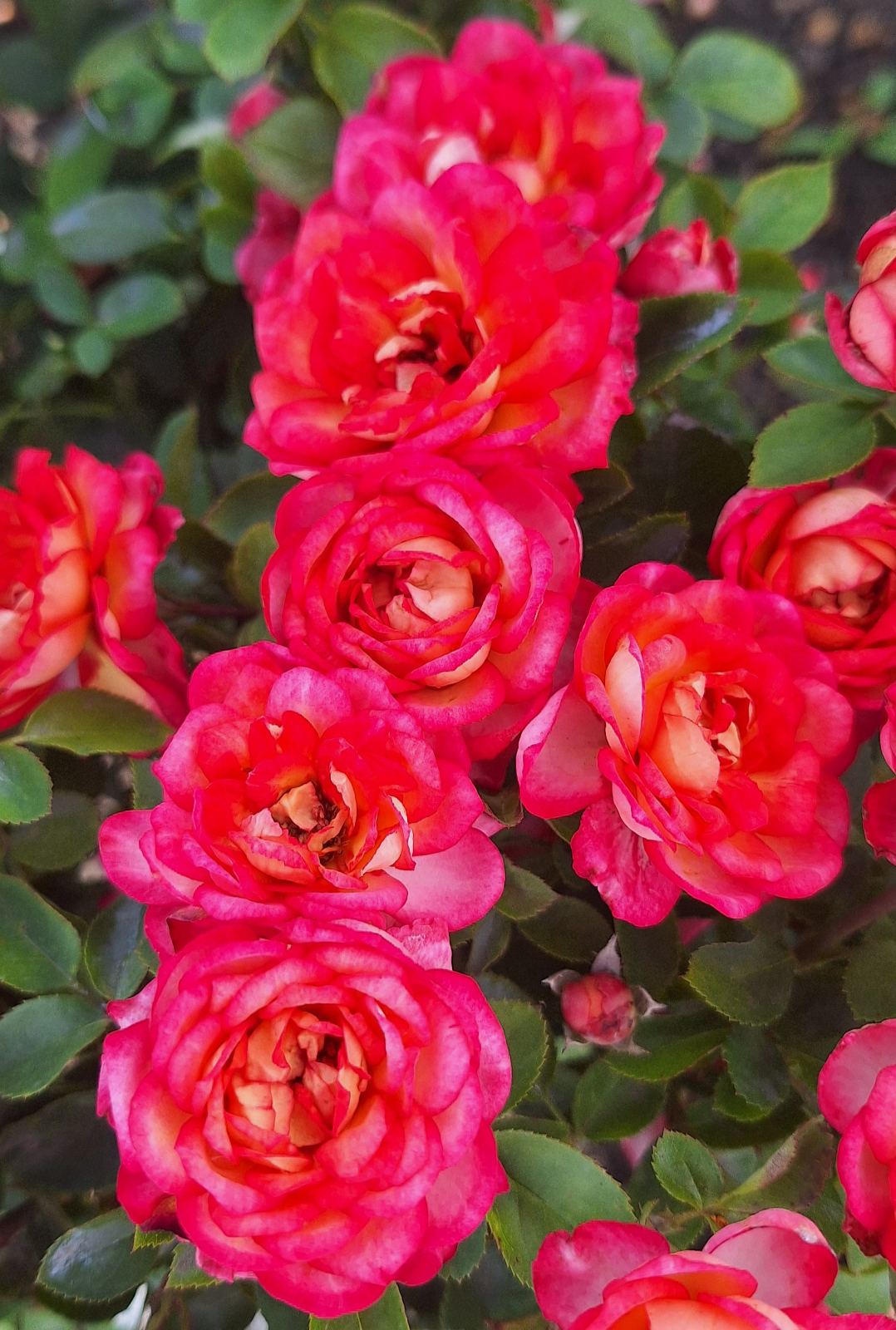 Кущ троянди розлогий і досягає висоти 50-60 см, а ширина становить близько 40 см. Рекомендується підрізати пагони, щоб уникнути їх витягування та оголення внизу, якщо це не робиться.