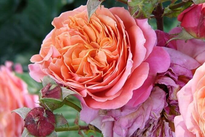 Ця прекрасна троянда новинка фірми Rosen Tantau виведена в 2010 році. Її творці постаралися втілити в ній ідеальну розу, поєднуючи масу позитивних якостей починаючи зі старовинної форми квітки і закінчуючи відмінною зимостійкістю. Колірна гамма трохи незвичайна і поєднує в собі помаранчеві, рожеві і пурпурні відтінки. Чашовидні квітки діаметром близько 10 - 12 см, щільно набиті приблизно 80 пелюстками. У період повного розпуску пелюстки злегка відгинаються назовні і утворюють, як правило, квартирував квітка, розетковидной форми. Ці великі квіти часто зібрані в невеликі суцвіття до 5 штук і пахнуть приємним, яскраво вираженим, фруктовим ароматом з цитрусовими нотками. Гіллястий, прямостоячий кущ у висоту досягає близько 70-100 см, а в ширину приблизно 60 см і темно-зеленим, глянсовим листям. У період рясного і тривалого цвітіння кущ під вагою пишних суцвіть приймає злегка розкидисту форму. Відмінна декоративність Мері Енн дозволяє милуватися красою цієї троянди до настання перших морозів.Крім цього, вона чудово виглядає в групових посадках і часто використовується при декоруванні бордюрів. Треба відзначити, що високі показники стійкості до морозів і хвороб.