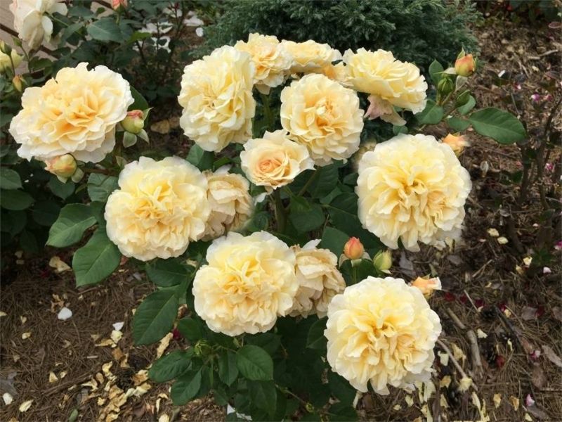 Кущ компактний і густий, висота 90-100 см. Листя здорове, глянсове, темно-зелене. Цвітіння дуже рясна протягом сезону.