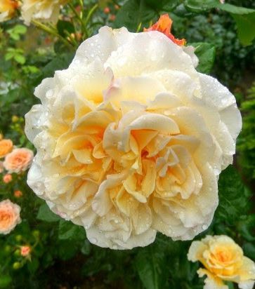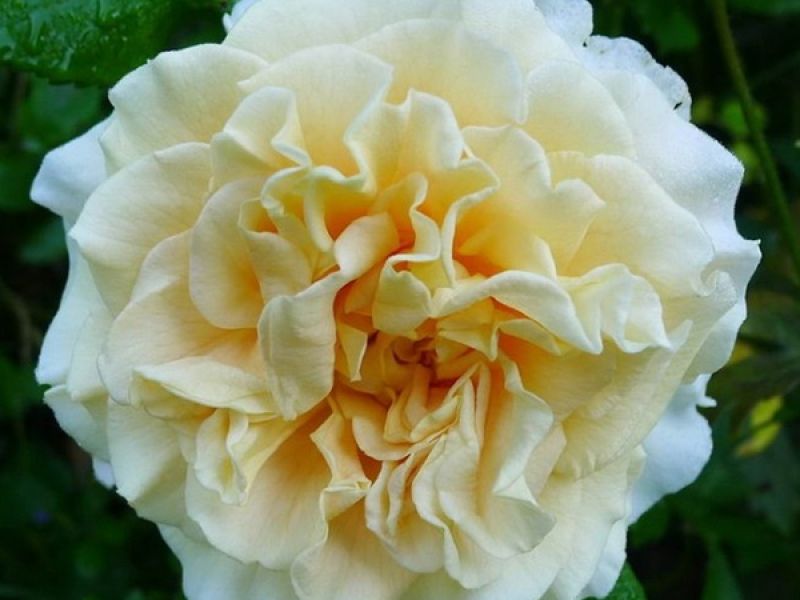 Квіти, немов півонії, мереживні, великі, густомахрові, в центрі жовті, а зовні кремово-білі, діаметром 12-15 см, приємно пахнуть квітами і фруктами.