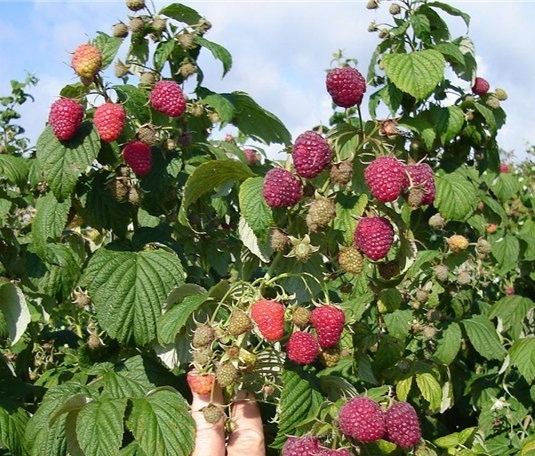 Кущ досить сильнорослий, пагонів заміщення дає багато, тому проблем з розмноженням не буде. Пагони потужні, прямостоячі, зеленого кольору, товщиною 2-4 см в залежності від віку малини, під вагою величезної кількості дозріваючих ягід можуть хилитися до землі в міжряддя, тому доцільна підв'язка або використання шпалери для зручності збору і догляду за рослиною. Висота стебел в основному 1,2-1,5 метра, але можуть виростати при добрій агротехніці до 1,8 метра. Пагони негусто покриті темними м'якими шипиками. Листя темно-зелені, дрібні, овальної форми.
